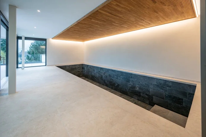 Das Dachgeschoss mit Pool, Fitnessraum und einer grandiosen Terrasse mit Weitsicht, bietet zusätzlichen Raum für gemeinsamen Stunden im Kreis der Familien unter einem Dach.