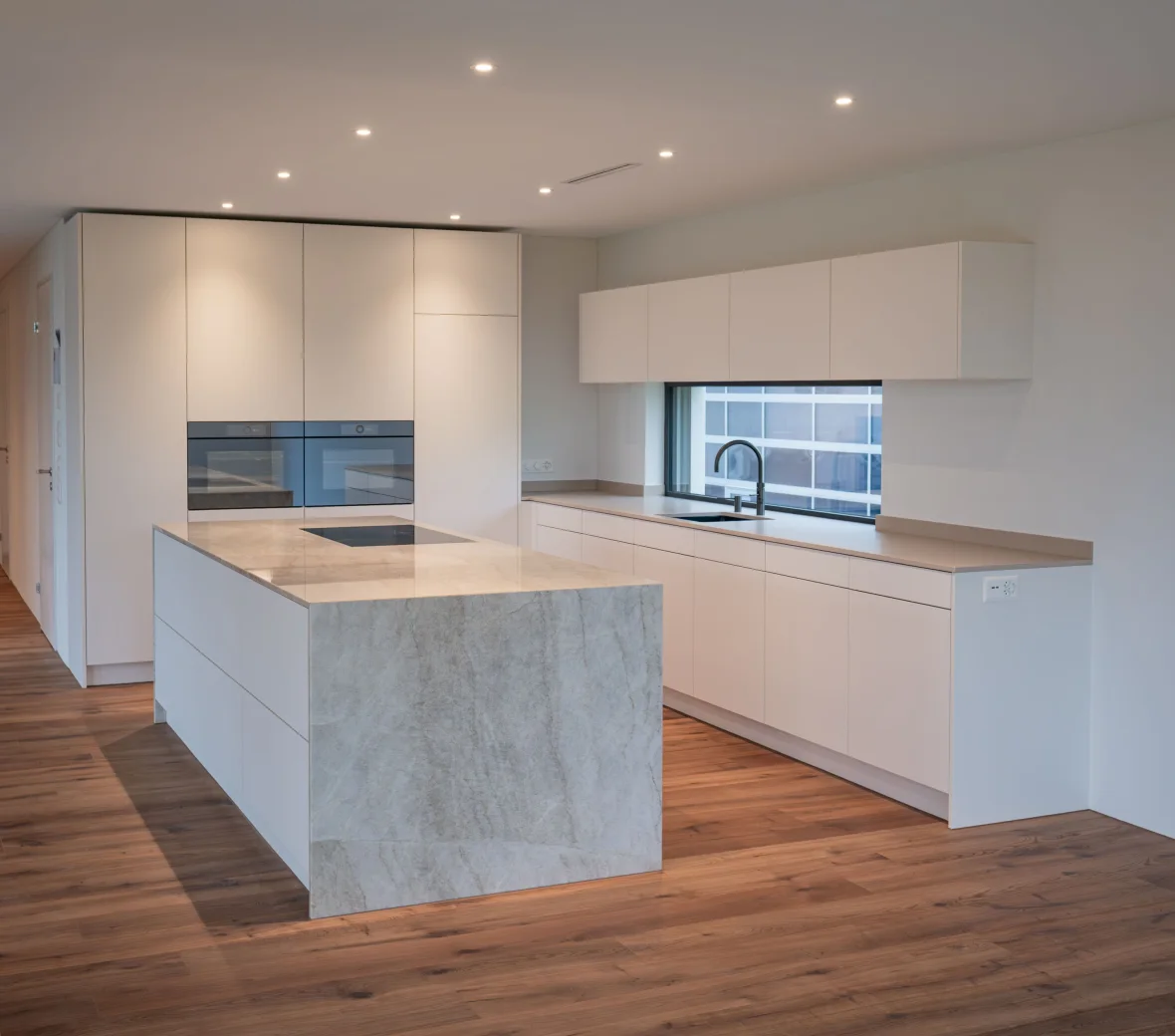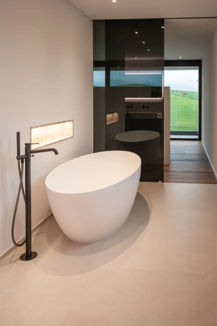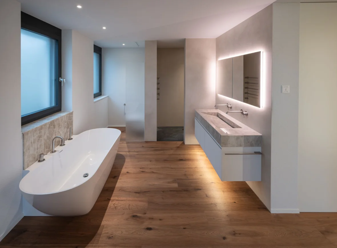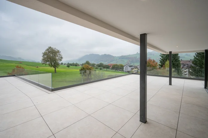In jedem Geschoss befindet sich eine grosszügige Wohnung mit geräumigen Ess- und Wohnbereich. Jede Wohnung verfügt über vier Zimmer, wobei das Masterzimmer mit grossem Bad und Ankleide klar hervorsticht.