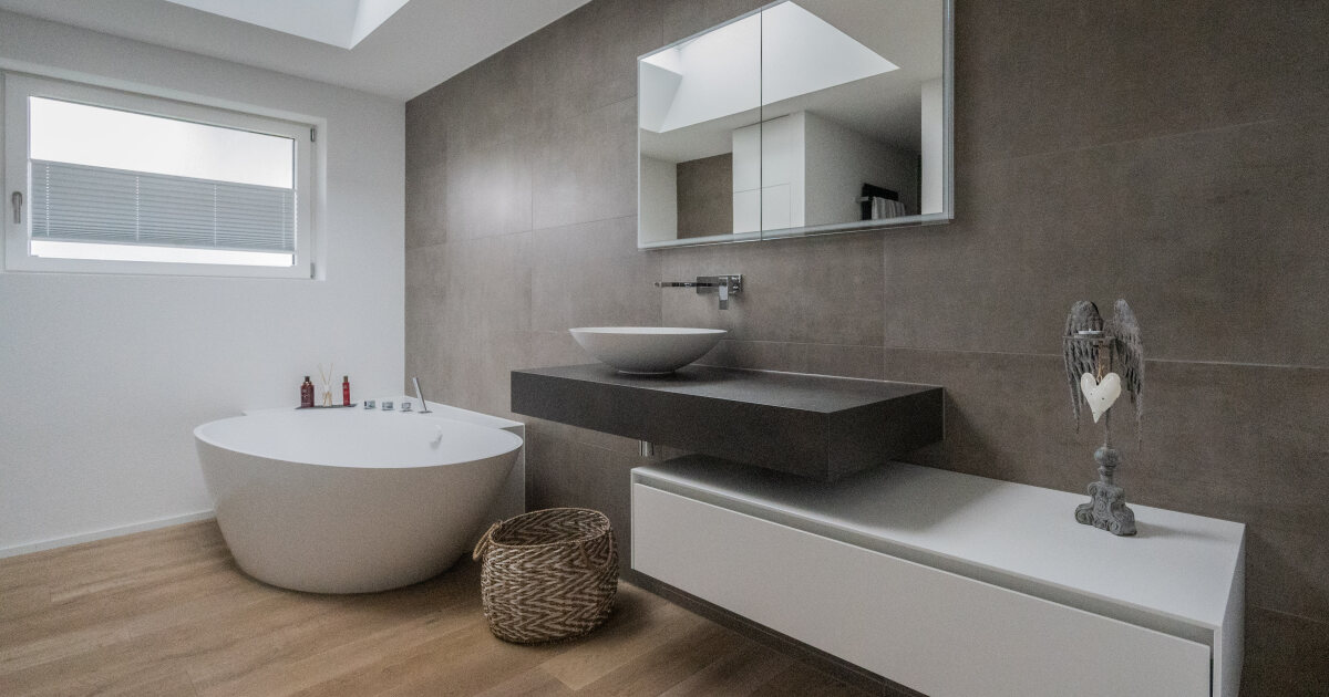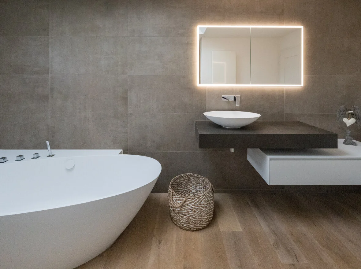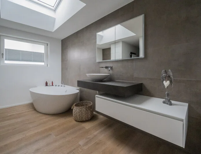 Eine Wellness Oase in den eigenen 4 Wänden. Die Blickfang ist die moderne und grosszügige Badewanne. Das Bad wird durch das neu eingebaute Dachfenster zusätzlich lichtdurchflutet.