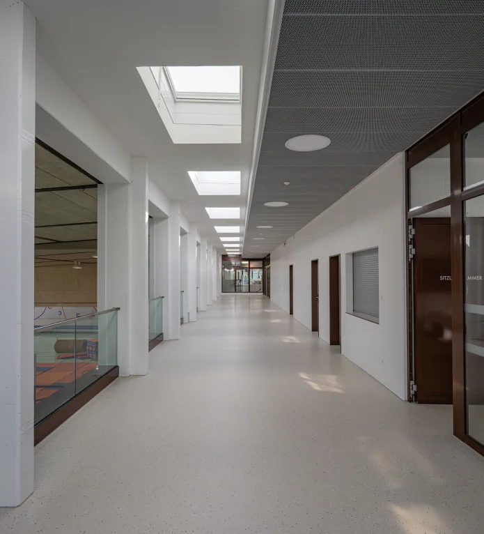 Das Hallenbad Willisau präsentiert sich in neuem Glanz: umfassend saniert und jetzt vollständig hindernisfrei zugänglich. Eine Rampe und ein Lift verbinden alle Ebenen nahtlos miteinander. Der neue, lichtdurchflutete Anbau bildet das Herzstück – mit einem einladenden Eingangsbereich, einer offenen Zuschauergalerie und modernen Büroräumen. Das vielseitig nutzbare Sitzungszimmer verwandelt sich bei Sportanlässen flexibel in einen gemütlichen Verpflegungs- und Aufenthaltsraum.