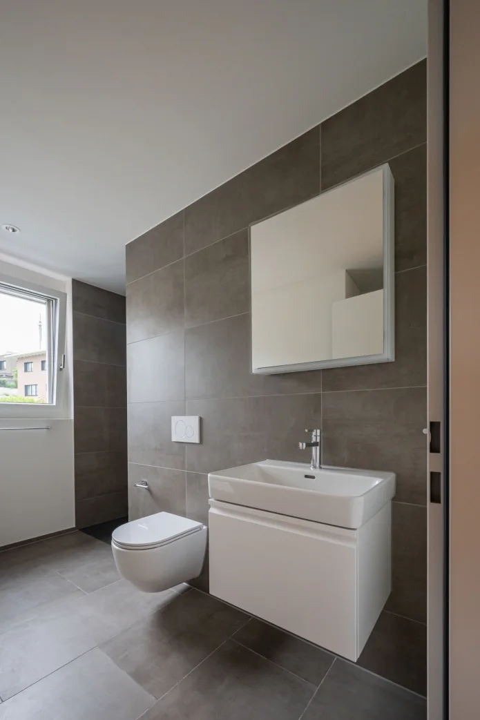 Das grosse Bad mit Dusche und Badewanne sowie ein separates WC bieten zusätzlichen Komfort. Ein Waschturm in der Wohnung rundet das Angebot ab.
